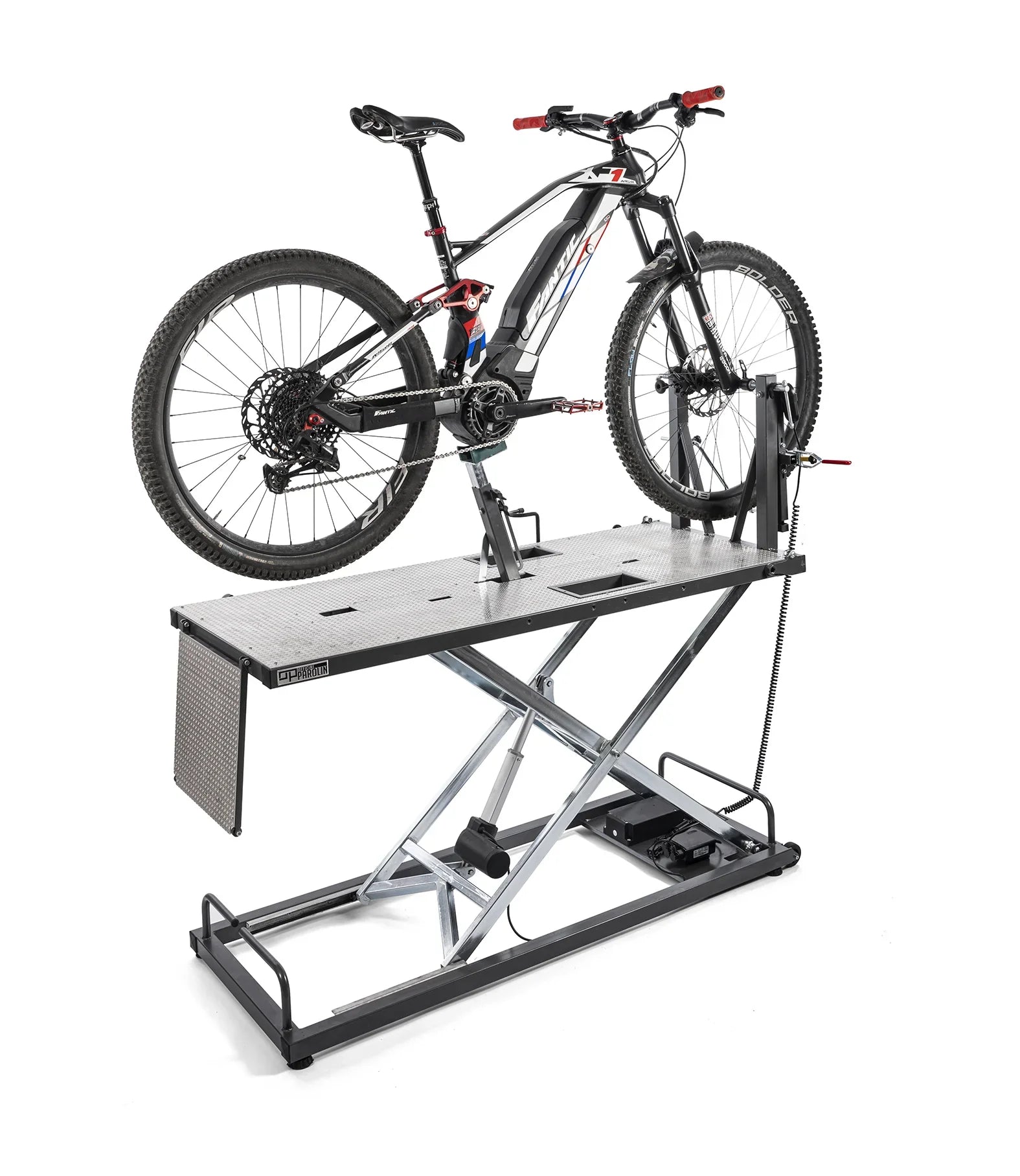 Die elektrische Werkbank wurde entwickelt, um das Leben jedes Mechanikers zu verbessern. Sehen Sie sich das VIDEO an. Seit der Präsentation von Agilis haben die Techniker von Officine Parolin nie aufgehört, die Entwicklung fortzusetzen. Nach zahlreichen Prototypen, der Untersuchung der Marktbedürfnisse, LDurch die Anwendung kleiner Verbesserungen und dreijähriger Tests wurde Agilis Power geboren. Eine Werkbank, die alle starken Elemente von Agilis vereint und zusätzlich einen Elektromotor enthält, um die Wartung in den spezialisiertesten Servicezentren zu erleichtern. Mit LMit der Einführung von Agilis wurde der Kraftaufwand zum Heben der schwersten Fahrräder drastisch reduziert, jetzt mit Agilis Power ist der Kraftaufwand auf Null reduziert! Dank der automatisch betriebenen Plattform, dem Kippelement und dem Elektromotor ist es nun möglich, das Fahrrad mit der Arbeitsfläche ohne Kraftaufwand und ohne jemals das Gewicht des Fahrrads tragen zu müssen, auf eine Höhe von 80 cm zu heben. Beim Entwerfen L„Bei Agilis Power wurde nichts dem Zufall überlassen, es wurde auf jedes kleine Detail geachtet, um mechanischen Servicezentren ein robustes und ergonomisches Produkt zu bieten, mit dem jede Art von Wartung am Fahrrad durchgeführt werden kann.“ Mit dem Elektromotor können Sie die Arbeitsplatte in nur 8 Sekunden komplett anheben und anpassen LHöhe, um schnelle Anpassungen vorzunehmen und an jeder Komponente in der richtigen Höhe arbeiten zu können. Die Stromversorgung des Elektromotors erfolgt über ein Kabel, das an eine herkömmliche Steckdose angeschlossen werden kann. Es ist möglich zu haben L„Agilis Power in der Version mit autonomer Batterie, die das Arbeiten ohne Stromanschluss ermöglicht, für eine geschätzte Autonomie von zwei Tagen intensiver Nutzung.“ Agilis Power wurde entwickelt, um das Gewichtsproblem von E-Bikes zu lösen. Es ist möglich, an jedem Fahrradtyp zu arbeiten. Tatsächlich ist es im Zubehörsatz dank des patentierten Gabelbefestigungssystems und der Adapterbuchsen möglich, Wartungsarbeiten an E-Bikes, Rennrädern, Citybikes und jedem MTB-Modell durchzuführen. Das Gabelbefestigungssystem und die Adapterbuchsen sind die gleichen wie bei Agilis, mit einigen kleinen Verbesserungen, die das Ergebnis des im Laufe der Zeit gesammelten Feedbacks sind. Die Radmitte an der Vorderseite, die direkt auf der Arbeitsfläche angebrachten Ablagen und die integrierten Räder zum einfachen Bewegen sind Details, die Agilis Power einen Mehrwert verleihen und ihn zum perfekten Arbeitspartner für alle Fachwerkstätten machen. Sehen Sie sich das VIDEO an. Verfügbares Zubehör (in der optionalen Vollversion enthalten): - Lenkerstütze - E-City-Stütze - Werkzeughalter - Bodenmatte